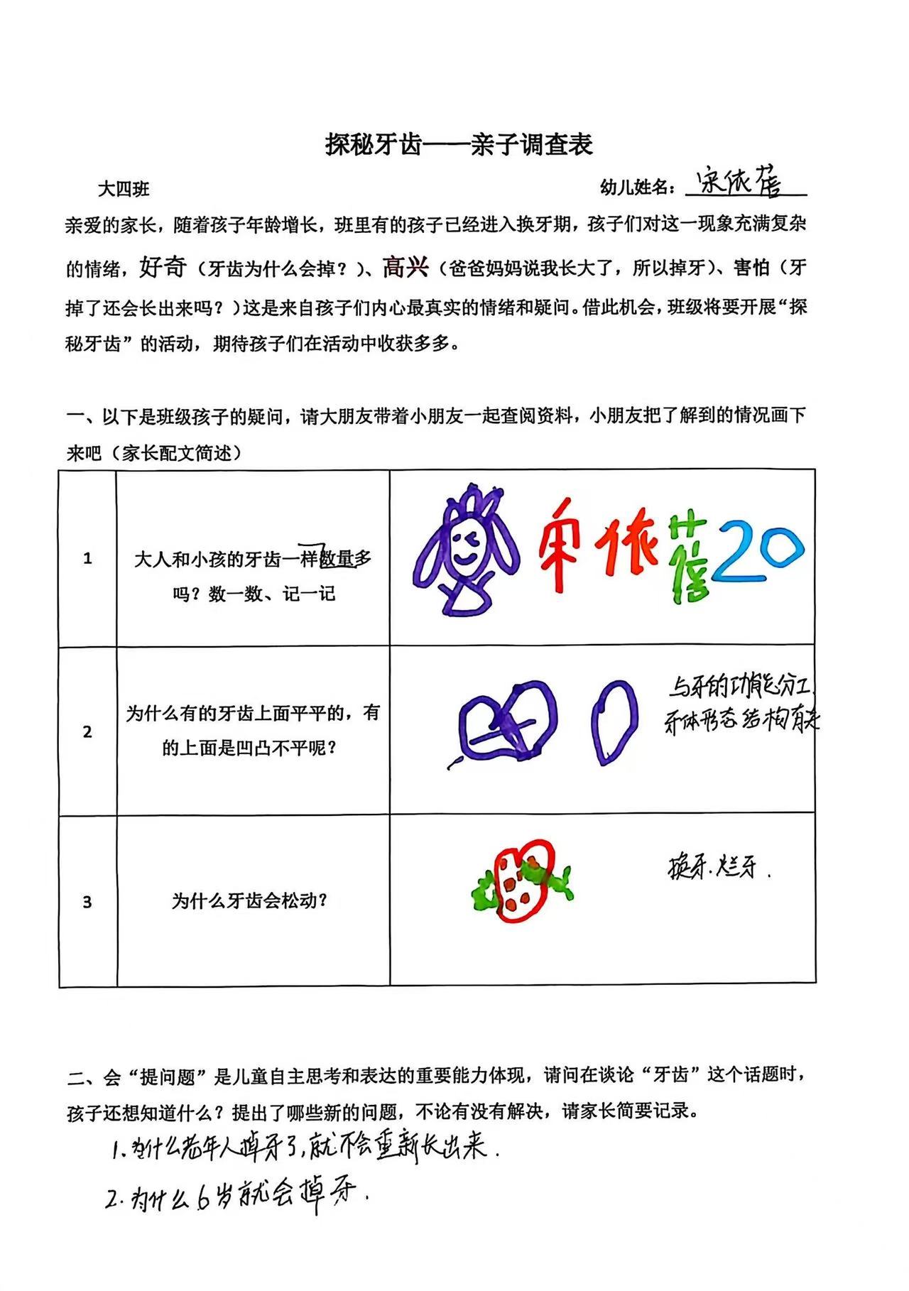 近期,大四班孩子们迎来了换牙季,身边小伙伴的牙齿悄悄“掉落”,关于牙齿的好奇提问在班级里此起彼伏。