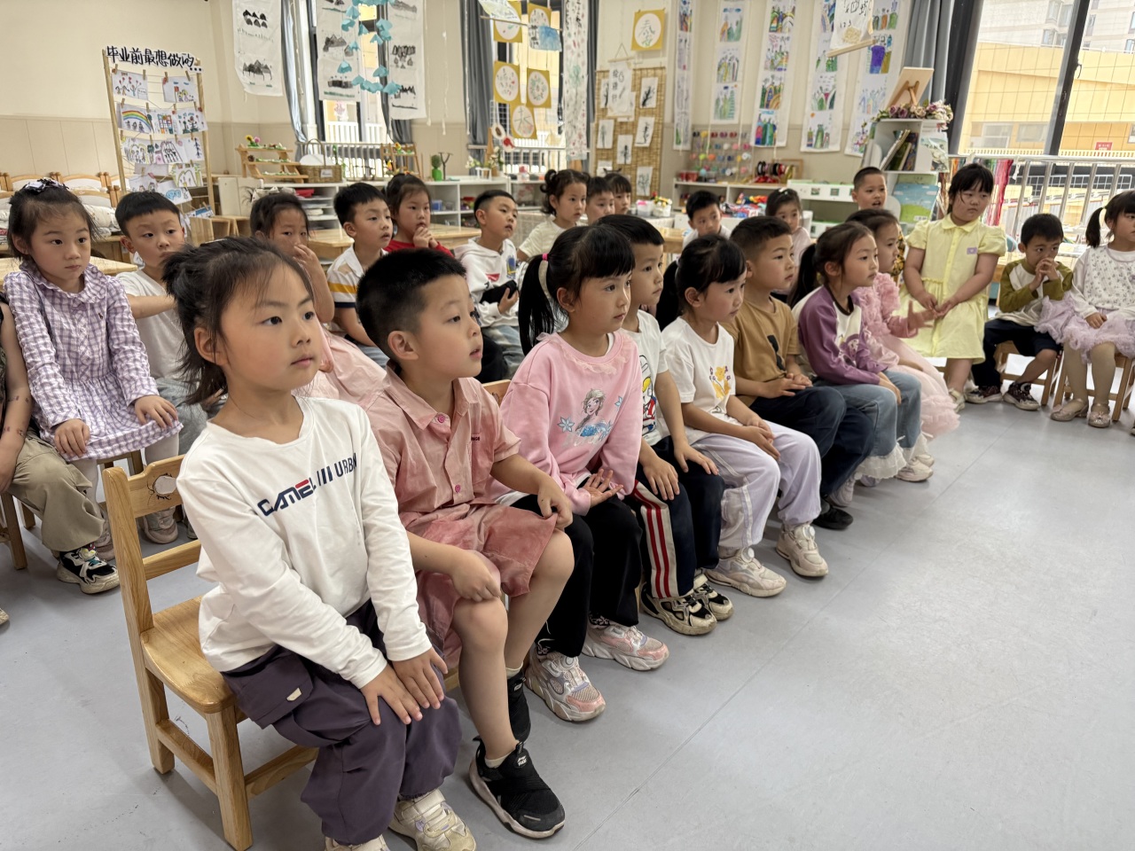 孩子们坐在位置上,