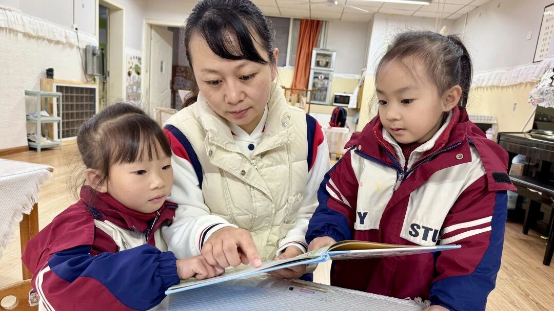 陈老师的保育日常是:餐后清洗渣盘守护饮食健康,午睡后为孩子们梳发,让她们整洁地迎接活动,她的工作平凡却藏着对孩子们的细致守护。她轻轻翻开绘本,