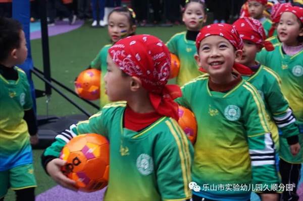 我园将“拼搏进取,团结协作”的体育精神渗透在微处,充分挖掘幼儿的“洪荒之力”,让久顺娃拥有健康快乐的童年。乐山市实验幼儿园久顺分园足球基地的挂牌成立,进一步丰富了我园的足球文化,促进幼儿全面发展,提升办园品味,强化办学特色。
