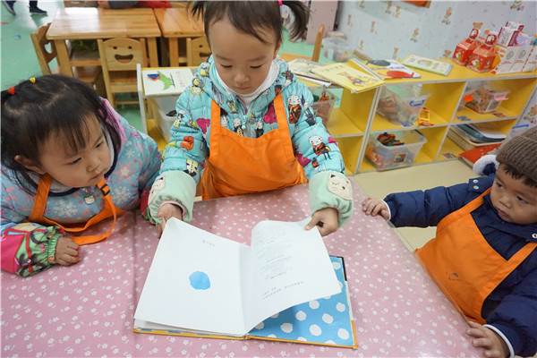 区域游戏时间,宝贝们在图书区发现了一本有趣的绘本,正聚精会神、兴致勃勃地阅读着,三三说:“珮珮,你看,这是小蓝和小黄,老师,为什么小蓝和小黄抱在一起就变成绿色了呢?”“老师也很好奇,那我们一起去找颜色宝宝试一试吧!”