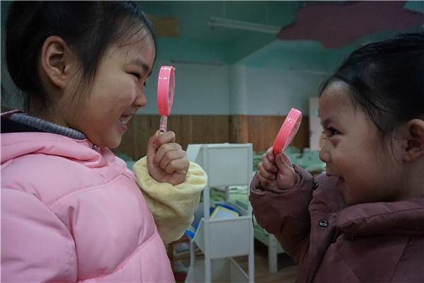 丰富的户外环境供给孩子们共同进步和延伸经验的舞台。活动中哥哥姐姐陪伴着弟弟妹妹们在幼儿园的各个角落寻觅着快乐的种子。