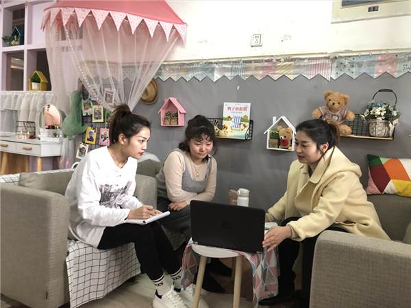稀疏的计算机打字声音传来,小五班的老师们正在班上的家庭区沙发上进行着班务会,她们这学期是面对的是新的小班小朋友,对幼儿及幼儿家庭的了解程度不够,他们进行了科学的班级分析和沟通其中近期的问题,商量制定班级的实施办法与教育策略。殷老师说:“我们班级的孩子们年龄较小,而且自理能力较弱,大多数孩子都不愿意主动的语言表达,这些都需要家长的配合协作。”张老师说:“家长们的参与对于小班年龄阶段的生活能力的提高尤为重要。怎么样拉近家长与老师的距离,老师与幼儿的关系也是突破口?”老师们讨论:“可以尝试亲子课堂,家长走进孩子们的幼儿园课堂”“举行自理能力的亲子活动”“借助自媒体的平台进行班级群的宣传,是家长们乐于接纳的方式”……通过这样的谈话,很快小五班的老师们的电脑上就呈现出了实施的方案,全班家长们都报名积极参与了老师们策划的亲子活动。