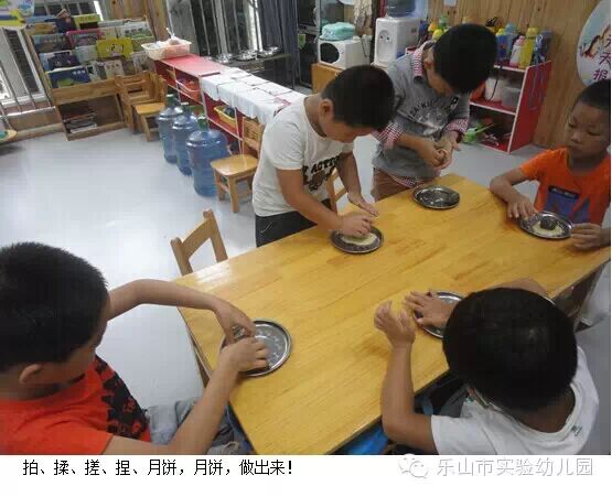 瞧,小朋友们的动手能力多强呀,经过一阵激烈的拍、揉、搓、捏和互相协作,一个个小面团在他们手里被做成一个个的小月饼,在经由烤箱的烘烤,一个个小月饼终于出炉。