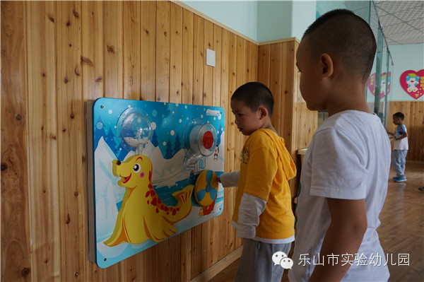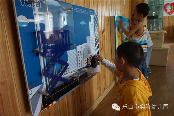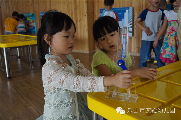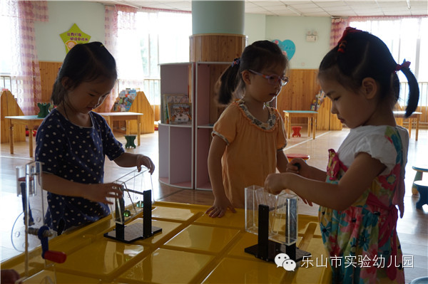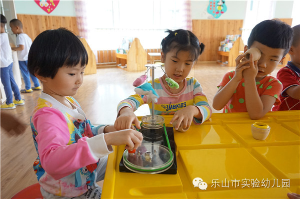 乐山市实验幼儿园精心创设:充满自主选择、自由发现、游戏探索的科学发现室。在这里,孩子们玩地球仪,进行沉与浮、虹吸现象、斜坡移动、溶解融化等小实验,尝试着运用钩子、凹凸镜、量杯、试管、直软尺等各种工具,通过看一看、摸一摸、做一做、玩一玩,在玩中学、做中学中获得对科学知识的认识。