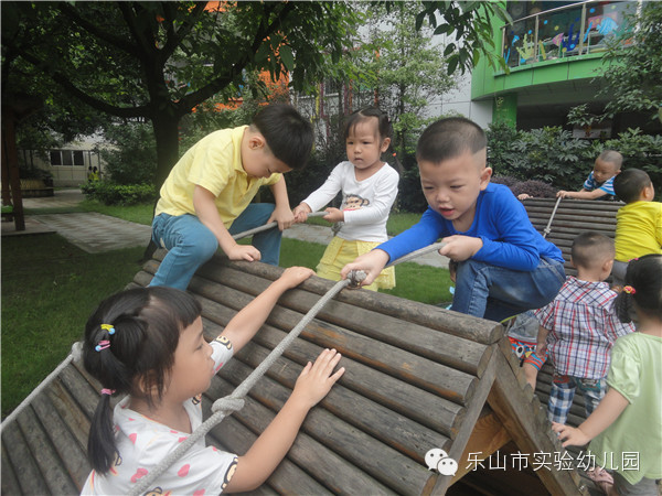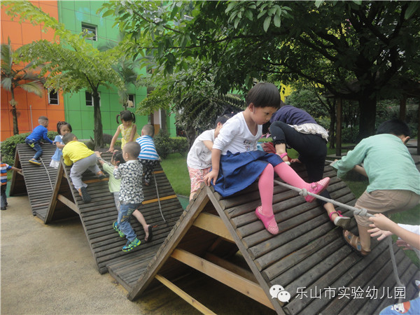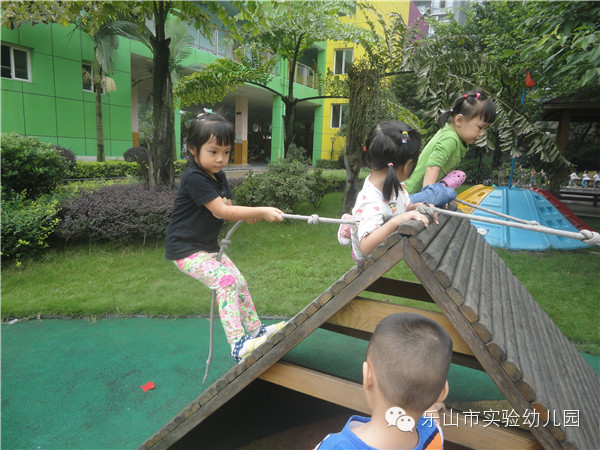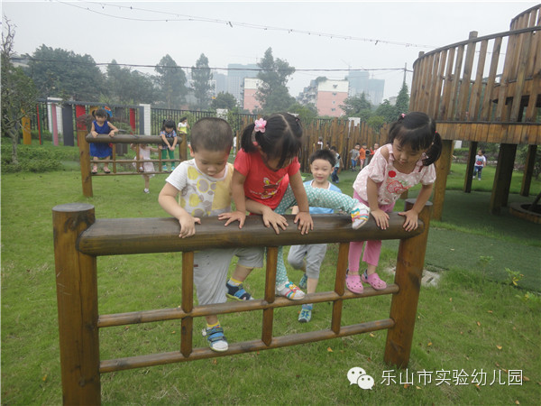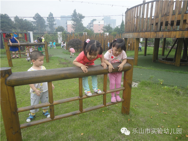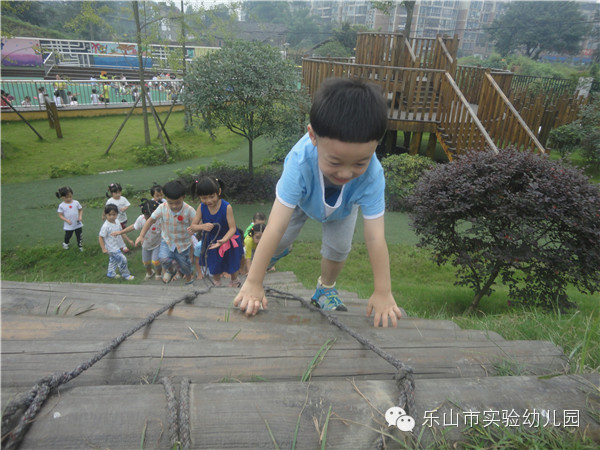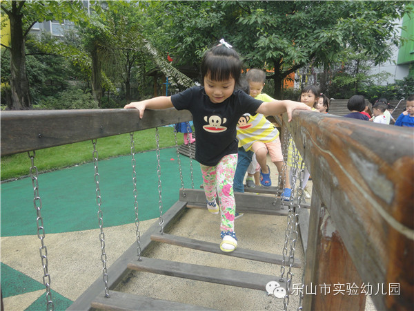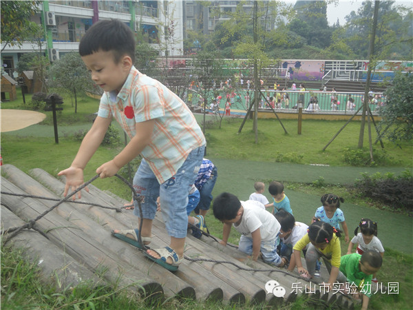 乐山市实验幼儿园不仅有专职的体育老师带领孩子们开展丰富的体能锻炼,更为孩子们精心打造了集健康运动,科学探索,自然生态,艺术为一体的户外多功能活动场所。让生命在运动和游戏中自由行走。