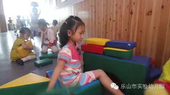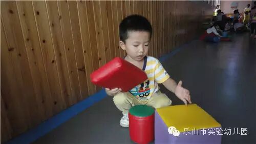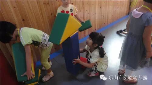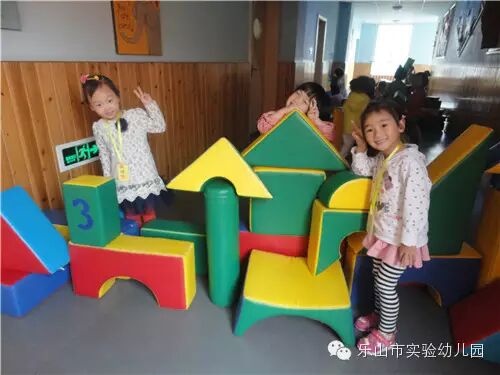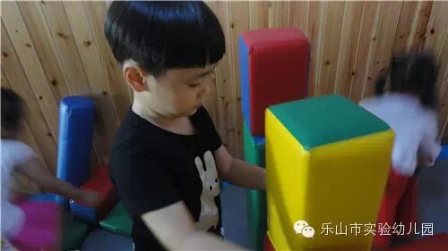 乐山市实验幼儿园的公共建构区,有着大量的软体、木质等大型积木,这里是孩子们的天堂,孩子们尽情地搭建自己心中的梦想:城堡、果园、高楼、立交......还有小朋友搭建出我们的幼儿园呢。