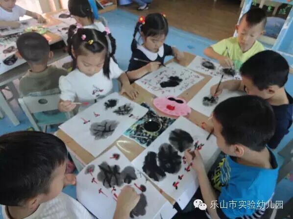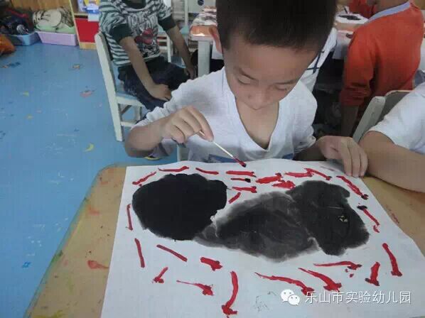 国画,又称“中国画”,是我国传统绘画。这次大五班的小朋友们,用毛笔和墨汁在宣纸上挥洒出一幅幅自己的“荷塘月色”。他们感受着水墨画带给大家的魅力,每个孩子都在想着“墨即是色”的道理,将荷叶画出不同的浓淡层次变化。再将小鱼加入一片片荷叶下,栩栩如生。