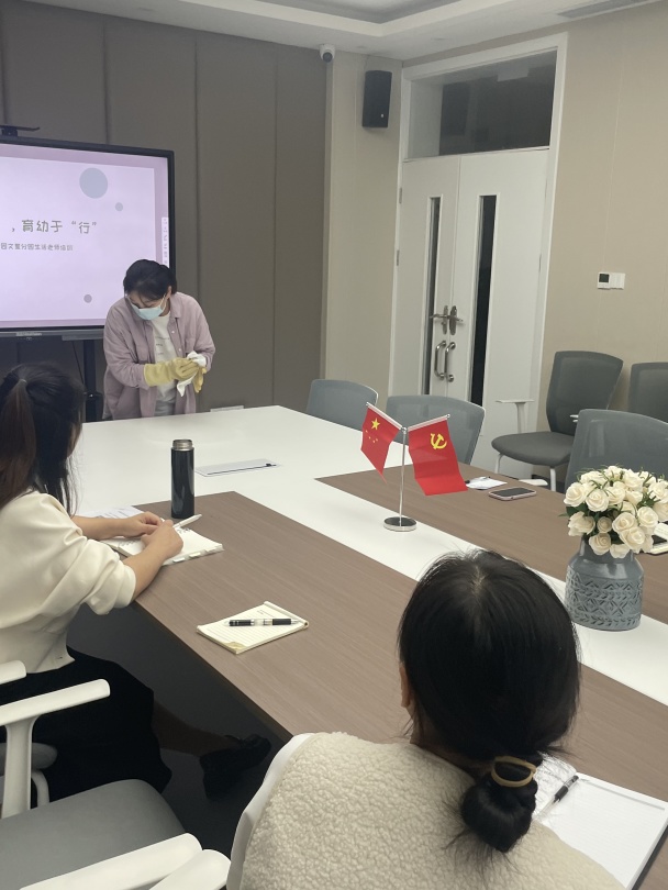 培训结束,殷主任组织大家进班教研,现场观摩学习,大家相互提问讨论,分享经验,交流解决办法。观摩结束,大家结合本班的情况进行调整改进,不断提升业务能力,让保育工作更细致、更精准。
