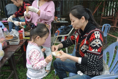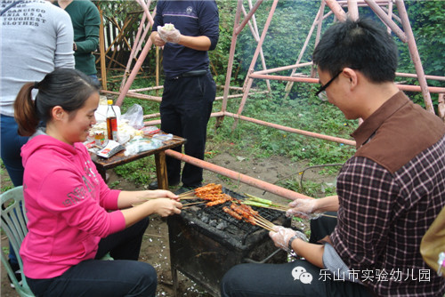 10月18日上午,乐山市实验幼儿园小三班的家长、宝宝和老师一起到太阳岛“杨家大院”开展亲子烧烤活动。