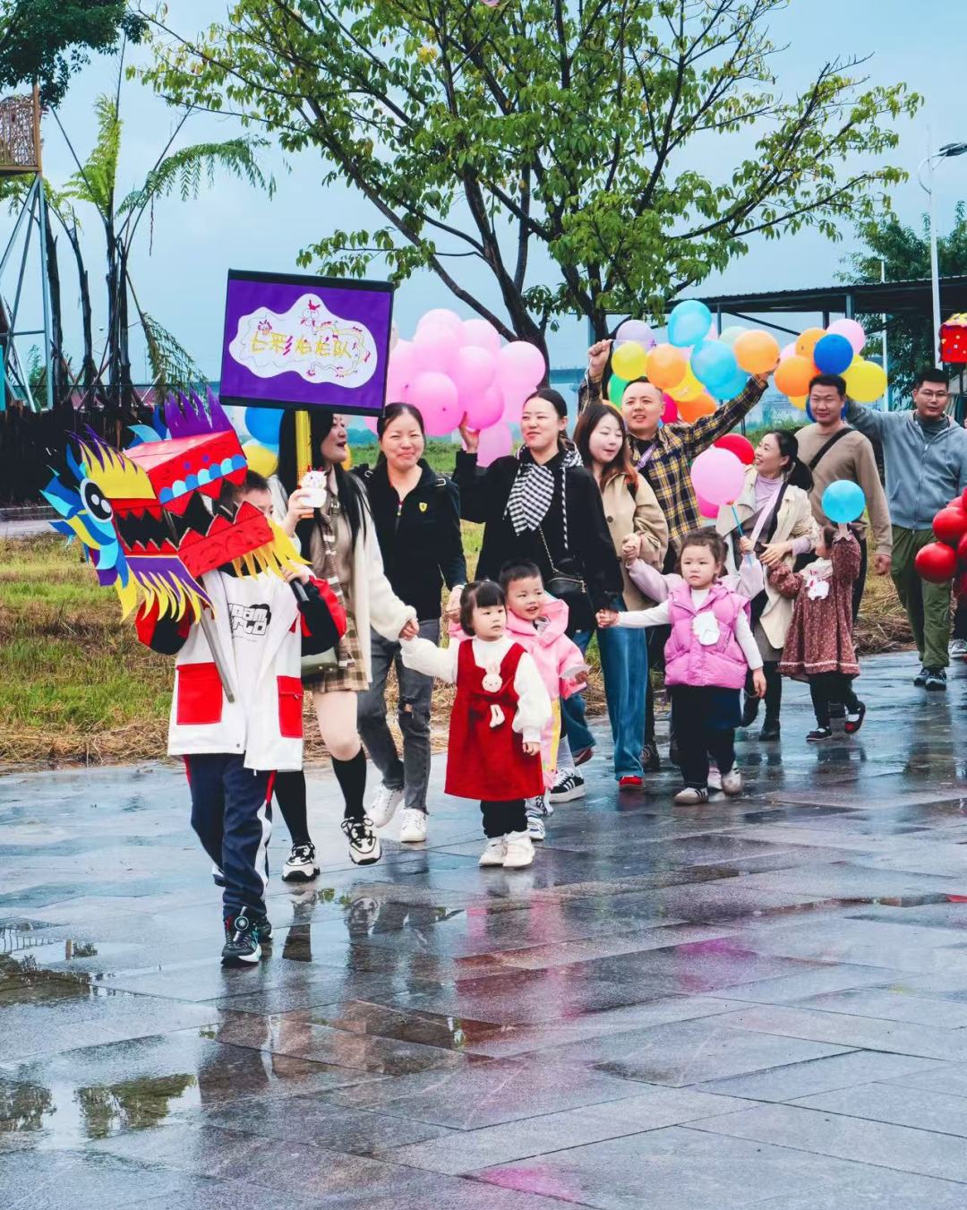 虽然,下雨也不妨碍爸爸妈妈和孩子们的趣味开场,牌面拿够~