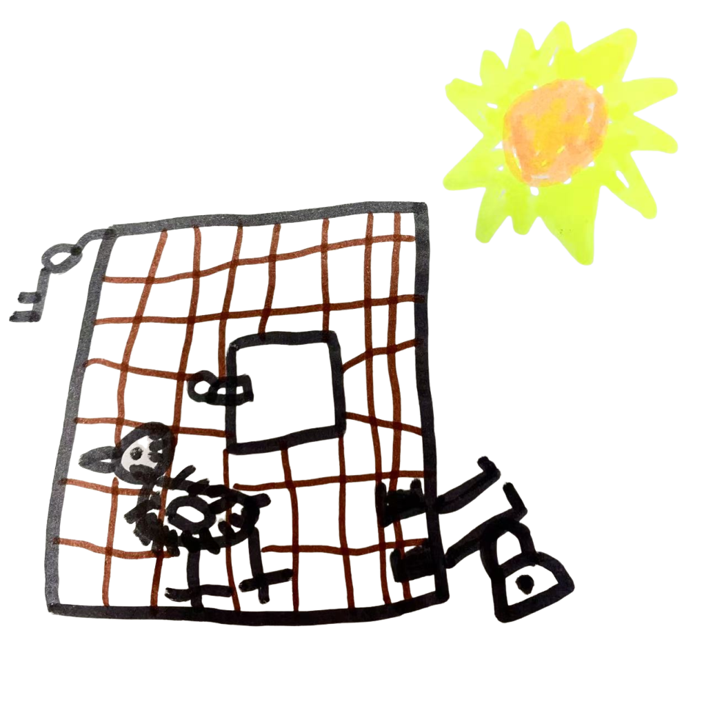 我奶奶每天都要给小企鹅打扫笼子,有时候我也会帮忙,还会喂它吃食物,只要有太阳,我们就会给它换一个铁笼子,带它在小区里面晒太阳呢!