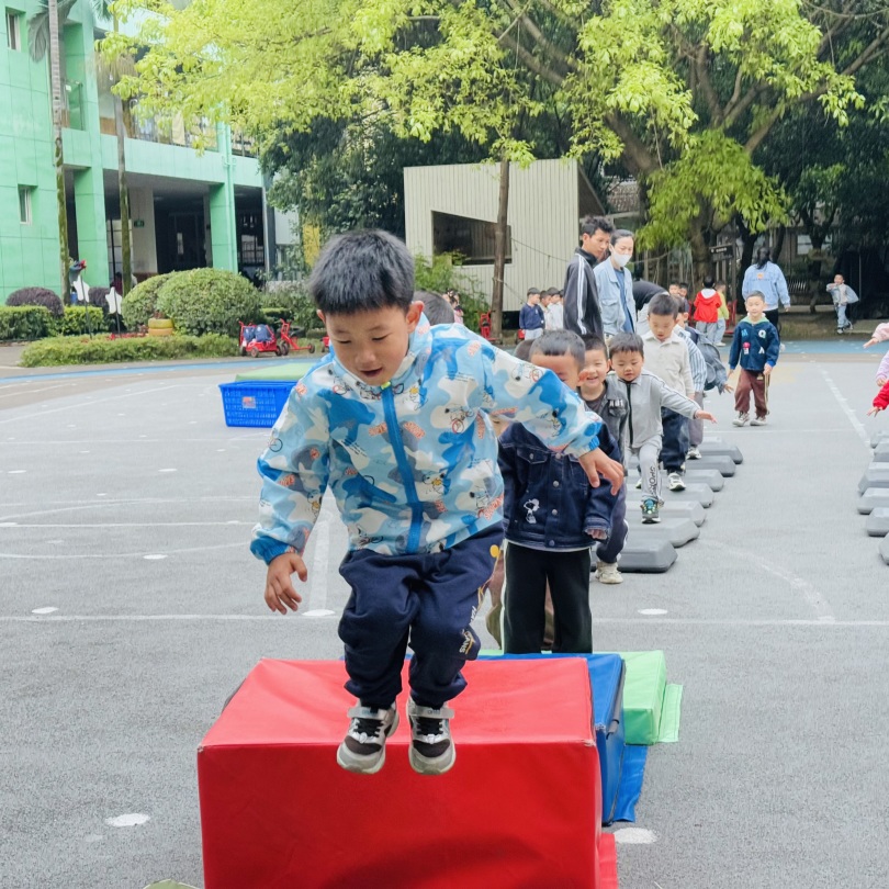 体育老师结合不同年龄段的体能特点,设计了丰富的运动项目,既锻炼了孩子们的协调性、耐力,也培养了团队合作意识。
