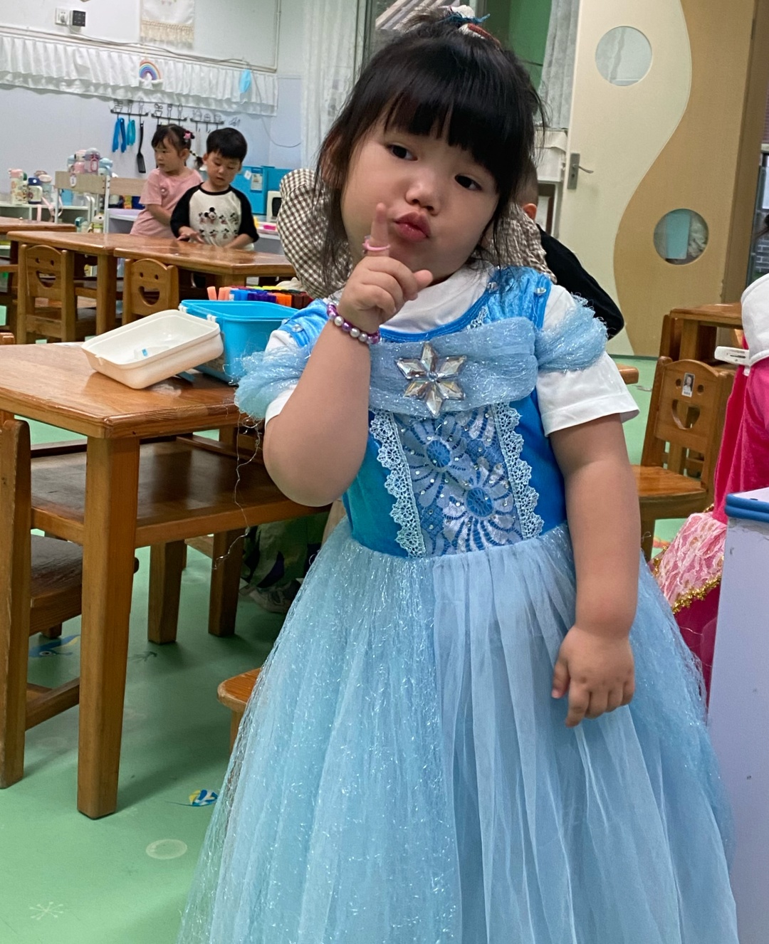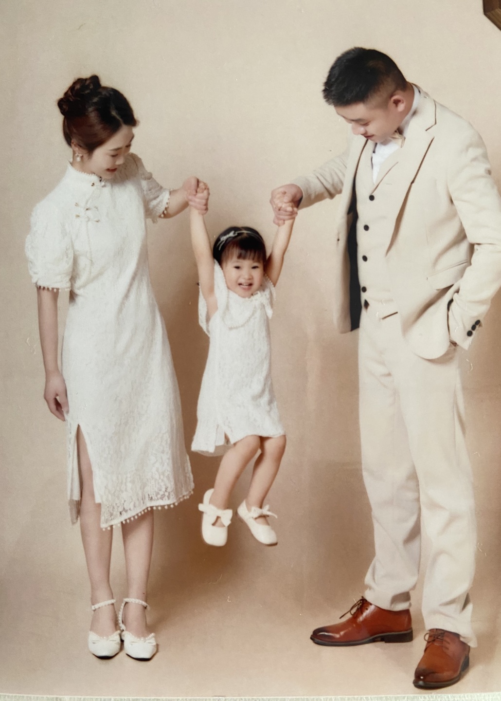 晗晗:我们是在一个房子(摄影棚)里面照相的,我和妈妈穿的一样的衣服,我觉得很漂亮。