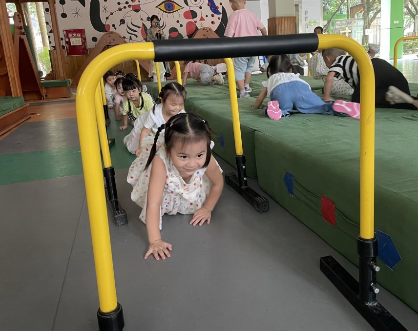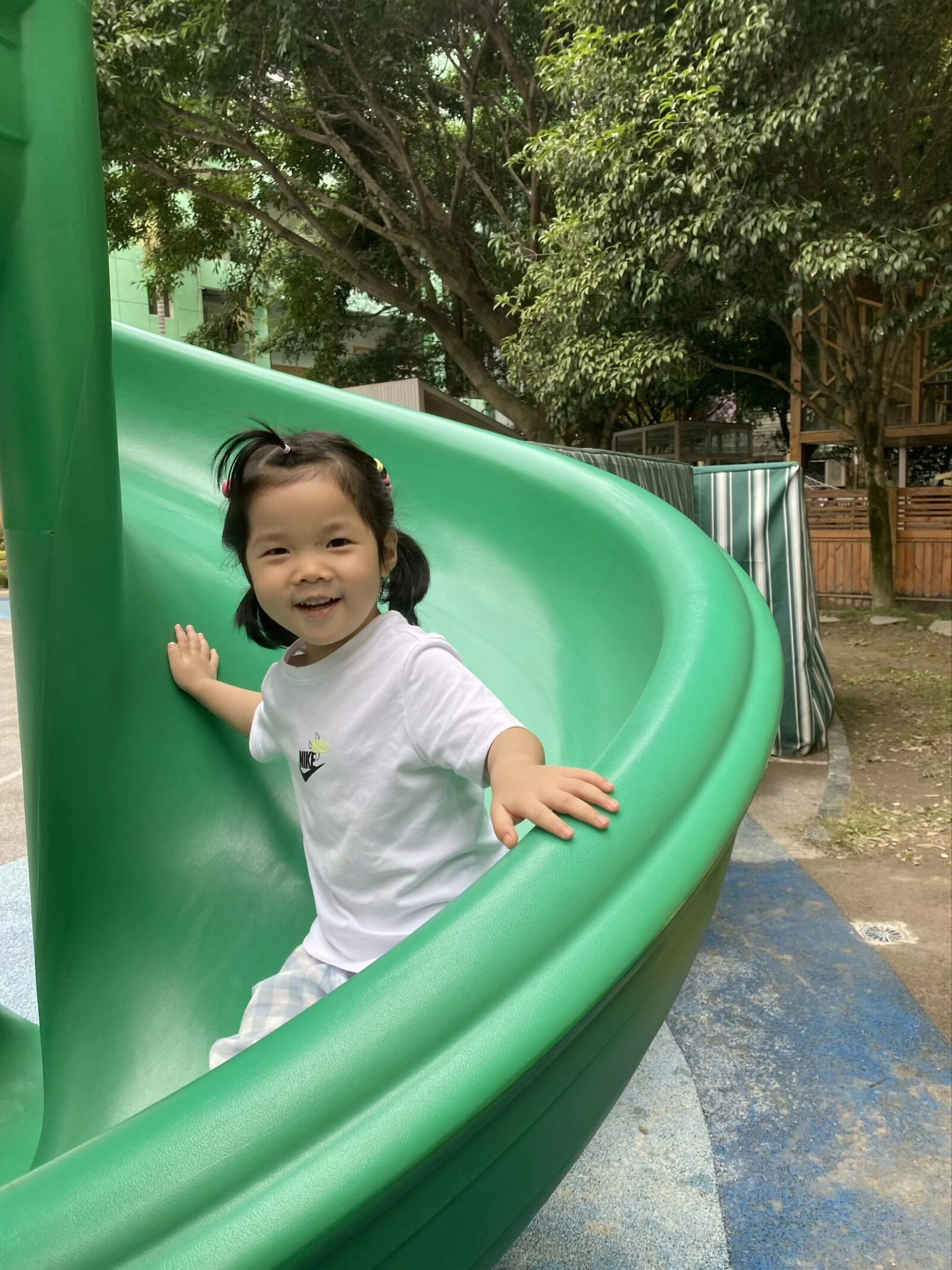 小允:我的家楼下有滑滑梯,我和小橙子姐姐一起玩,我请她到我家里去玩玩具。