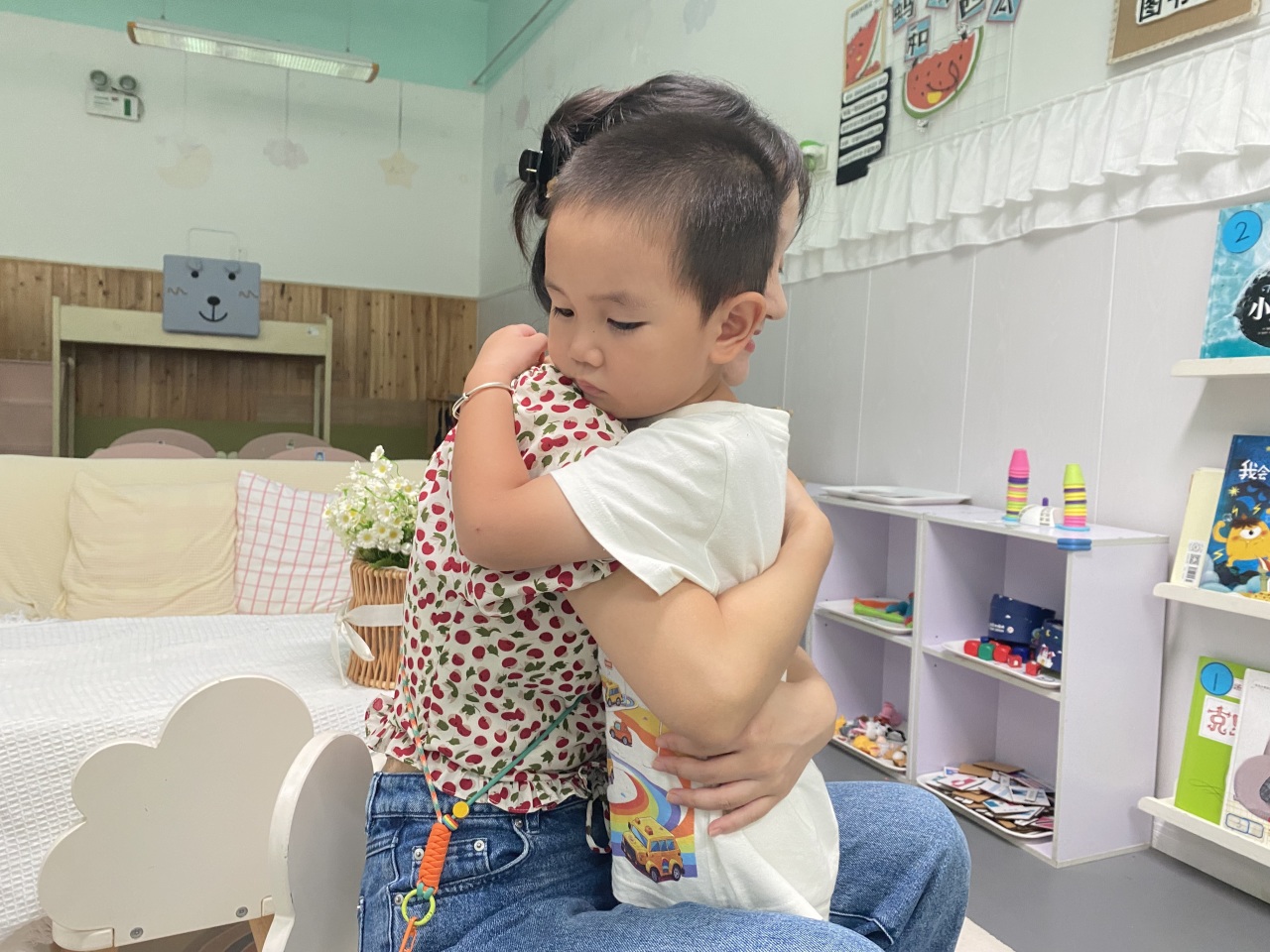 家里有爸爸妈妈和我,我最喜欢妈妈抱着我啦。