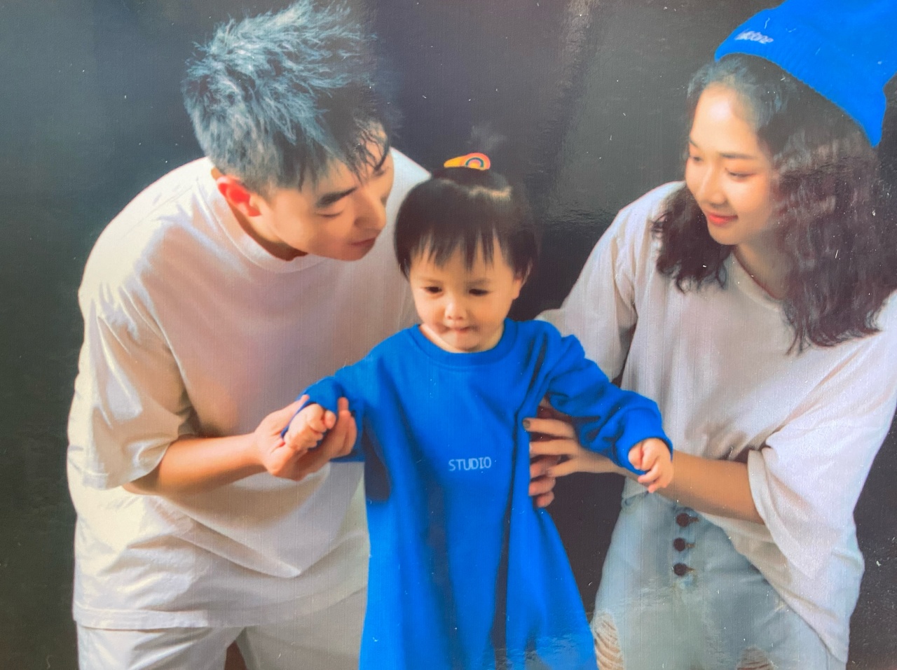 诗毓:这是我爱的爸爸妈妈,我的爸爸不在家,我想他就看爸爸的照片。