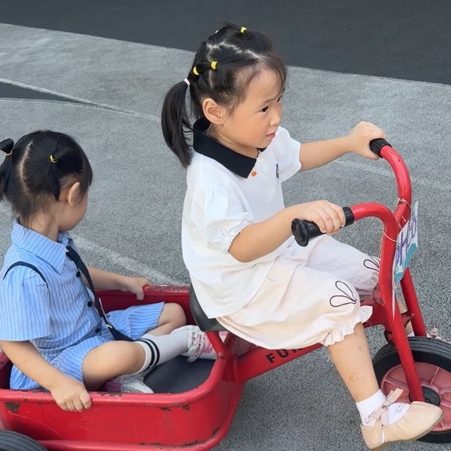 每天充足的户外活动时间里,孩子们尽情奔跑、攀爬、骑车。在运动中锻炼身体协调能力,在游戏中学会与同伴相处,健康快乐成长每一天!