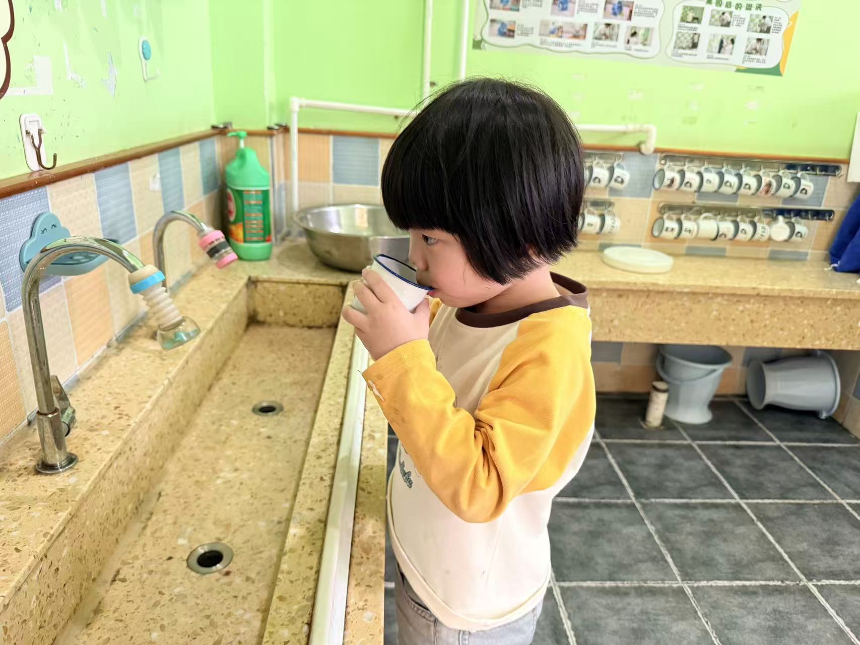 两餐两点结束后,孩子们主动接水漱口。“咕噜咕噜,吐——”简单的动作,保护的是珍贵的乳牙,养成的是终身受益的卫生习惯。