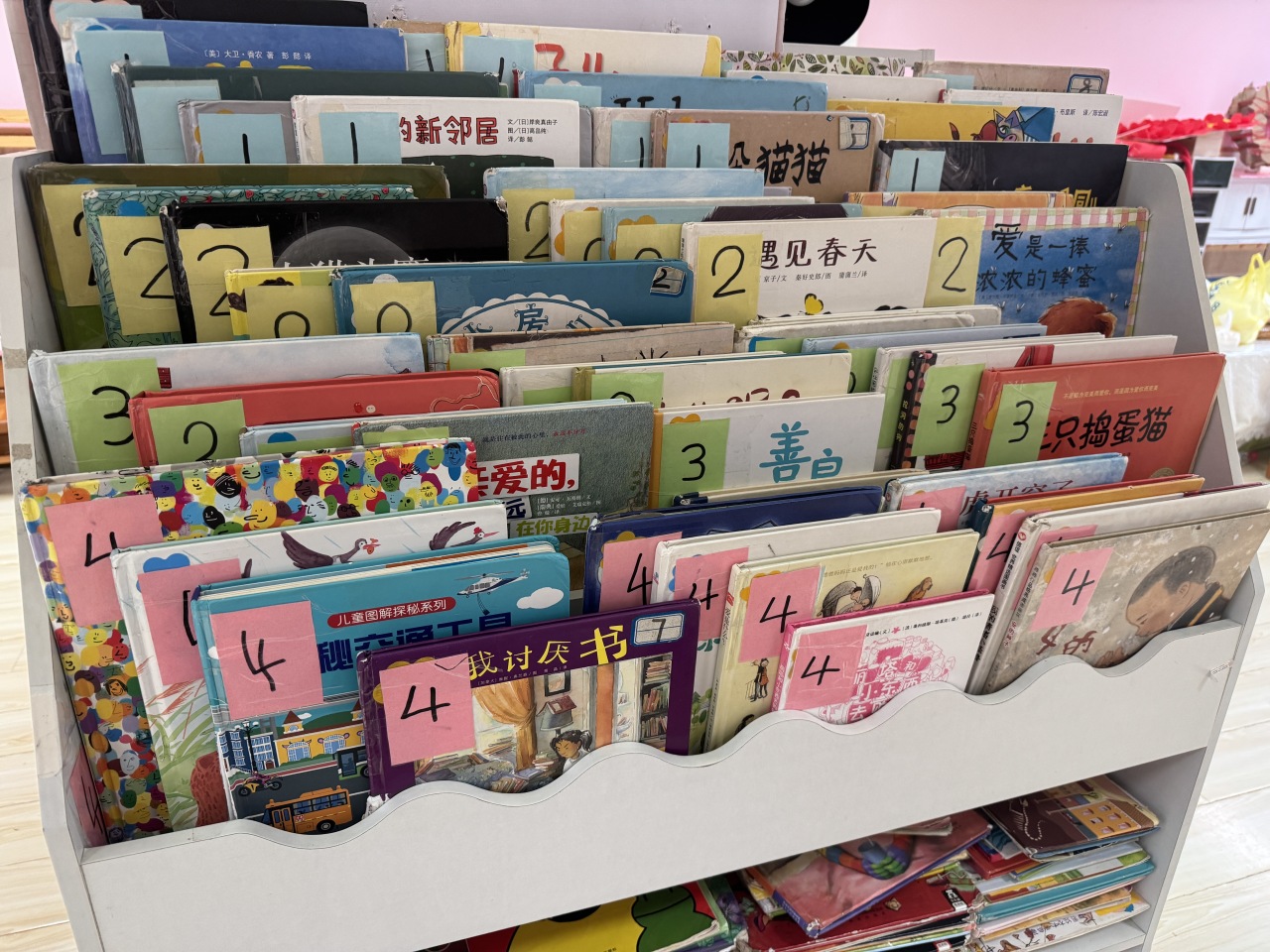 每个孩子都有属于自己的“领地”:贴有照片的板凳和漱口杯、专属符号标记的水杯放置区、按标记归位的书架和玩具收纳筐......在每天的一日生活中,孩子们逐渐养成了物归原处的好习惯。