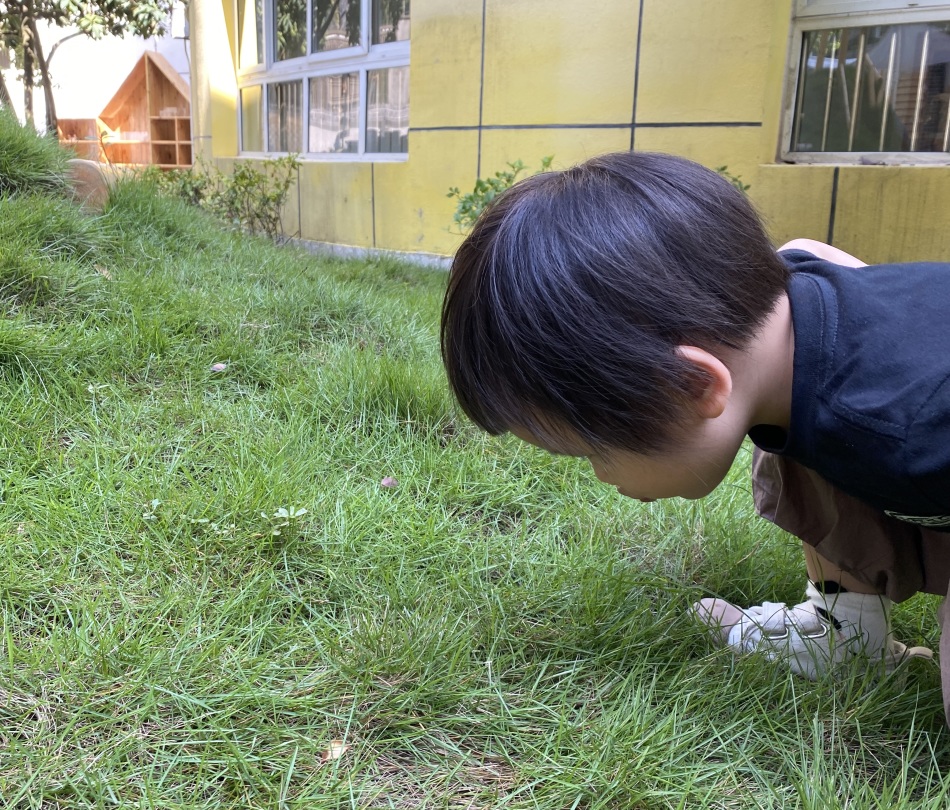 惊讶的脸,我突然看到树上有一只大大的毛毛虫。