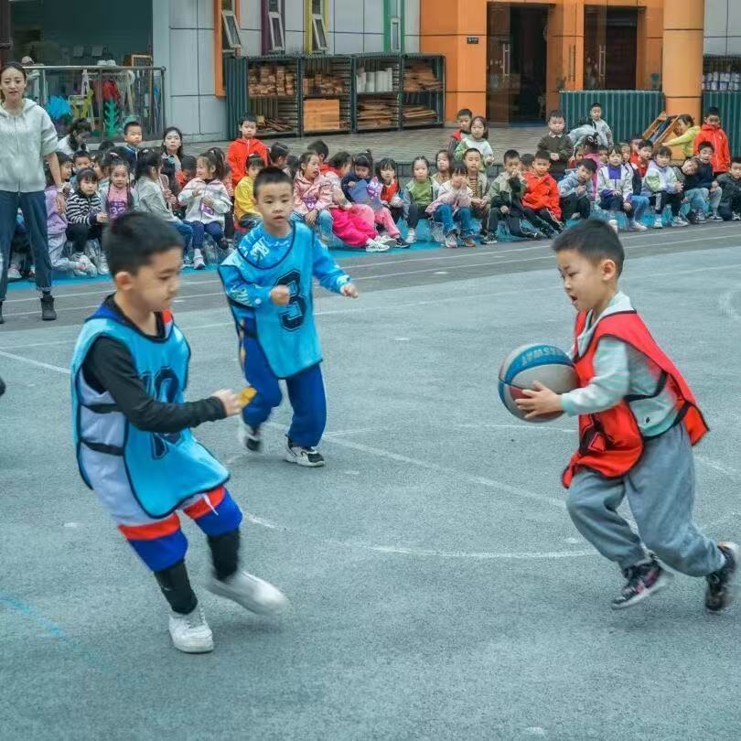 运动酷跑时,孩子们突破重重障碍,到达终点,敲响胜利之鼓。在汗水中,他们学会了坚持。