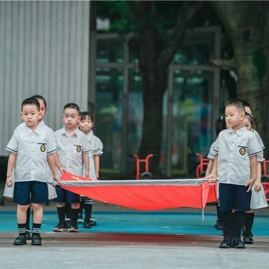当升旗仪式时,孩子们成为庄严神气的护旗手。在庄严的场合中,他们学会了责任。