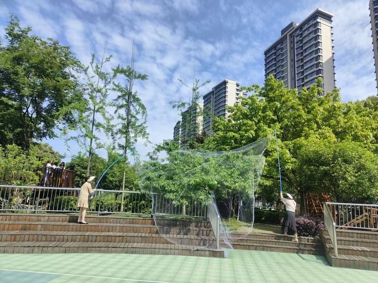 当他们发现桃子被小鸟啄食时,想出了好多保护方法:制作稻草人、用网子罩住桃树、给桃子套口袋。最后在老师和家长志愿者的帮助下,收获了满满的桃子,并与全园师生分享。