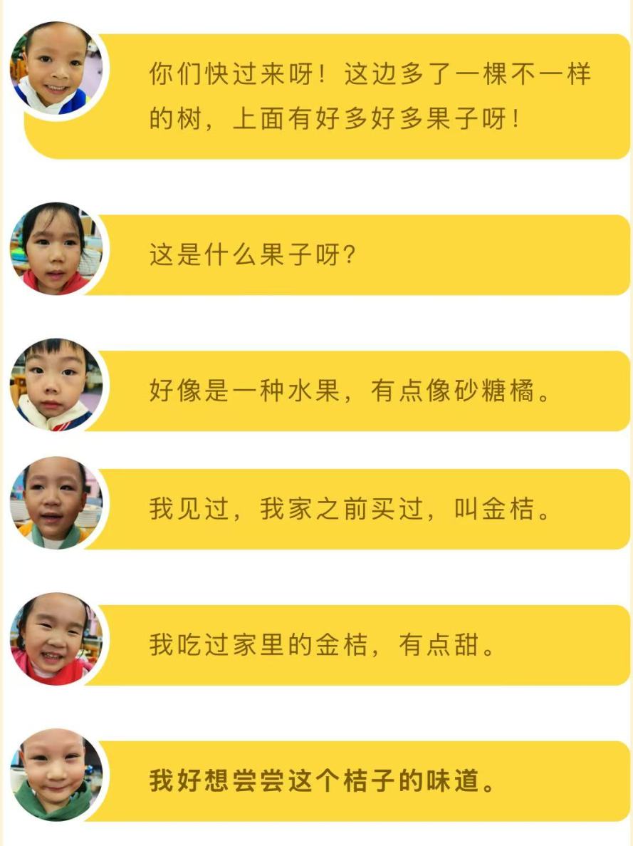 在这里,桃子、李子、橘子、苹果、桂圆、杨梅、黄桃、石榴、桑葚、樱桃、柚子、枇杷、梨子……应有尽有1。孩子们在感受四季变化的同时,收获大自然在不同季节给予的馈赠,也在亲近自然、快乐游戏的过程中,学习悄无声息地发生。