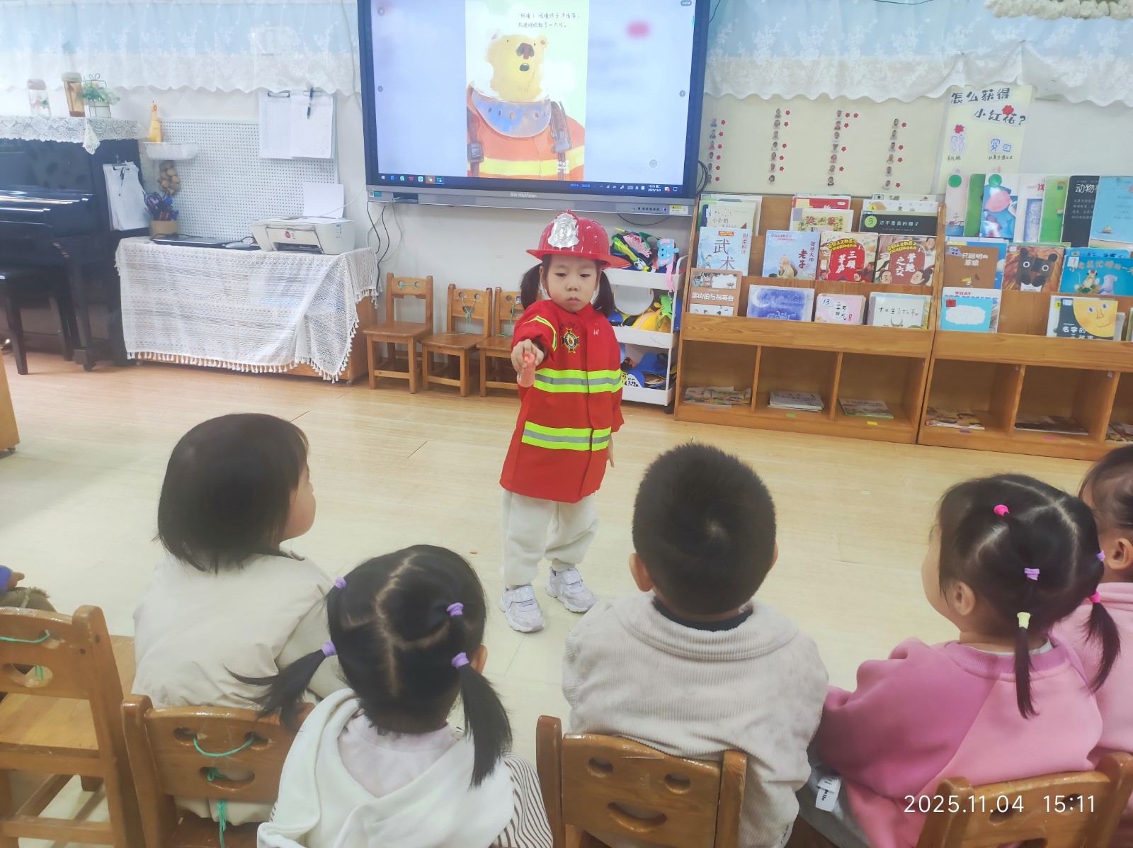 “火”速行动,以“练”为战 王诗雨 11月为全国消防宣传月,主题是“全民消防、生命至上——安全用火用电”。在全国消防日来临之际,乐山高新区实验幼儿园,开展形式多样的消防安全教育活动,让我们一起去看看,孩子们学习了哪些消防知识呢~ 消防教育玩中学 小班故事:绘本启蒙识英雄 小班的孩子们跟随绘本走进《消防员大壮》的勇敢世界。通过色彩鲜艳的图画和引人入胜的故事,孩子们认识了消防员的服装、消防车以及消防员日常工作,知道了火灾发生时应该如何求助,初步建立了消防安全意识。 中班实践:消防灭火我知道 中班的孩子们在教师的引导下,近距离观察、认识灭火器并了解使用方法。教师用浅显易懂的语言讲解灭火器的用途和使用场景,强调“小朋友不能自行使用,发生危险及时告知大人”的重要原则。 大班探索:童心绘悟安全 大班的孩子们在了解消防车的基本结构和功能后,拿起画笔化身小小设计师,描绘出他们心中的消防车。长长的云梯、粗粗的水管、闪亮的警灯、各种各样的救援工具……一幅幅充满童趣的画作,展现了孩子们对消防设备的深刻认知和对消防员的由衷敬佩。 实战演练 火场逃生有序撤离 火灾逃生演练11月3日上午,乐山高新区实验幼儿园里急促的警报声突然响起,消防逃生演练正式拉开帷幕。各班教师立即停止活动,迅速组织幼儿疏散。孩子们在老师的指导下,弯腰低头,沿着预定疏散路线,快速有序地从各班活动室向安全区域撤离。 疏散过程中,各班保育员在楼梯口、转弯处等关键位置指引,防止幼儿在疏散过程中跌倒、摔伤。 各班教师及时清点人数,并向汤园长汇报疏散情况。 携手共建平安校园 消防员介绍灭火器使用方法 演练结束后,幼儿园里还迎来了消防员叔叔的身影,孩子们瞬间围拢过来,小脑袋凑在一起,目光紧紧追随着消防员,生怕错过任何一个细节。受邀前来的乐山市消防救援支队高新区大队迎宾大道特勤站消防员为全体师生讲解并演示了灭火器的正确使用方法。 “大家记住四个字——提、拔、握、压。”消防员叔叔一边演示,一边用通俗易懂的语言解释,“提起灭火器,拔掉保险销,握住喷管前端,压下握把,对准火焰根部喷射。” 讲解后,幼儿和教师亲身体验了灭火器的使用方法,在实际操作中学习了正确、科学的知识。 最后孩子们向消防员送上礼物,向所有消防员叔叔们致以最崇高的敬意!感谢你们的辛勤付出和无私奉献,是你们的存在,让这个世界充满了更多的安心和温暖。 这次活动不仅让孩子们学到了基本的消防知识,更重要的是通过亲身参与,提高了师生在突发事件中的自救自护能力。乐山高新区实验幼儿园将持续开展更多安全教育活动,为孩子们平安、健康、快乐成长保驾护航!