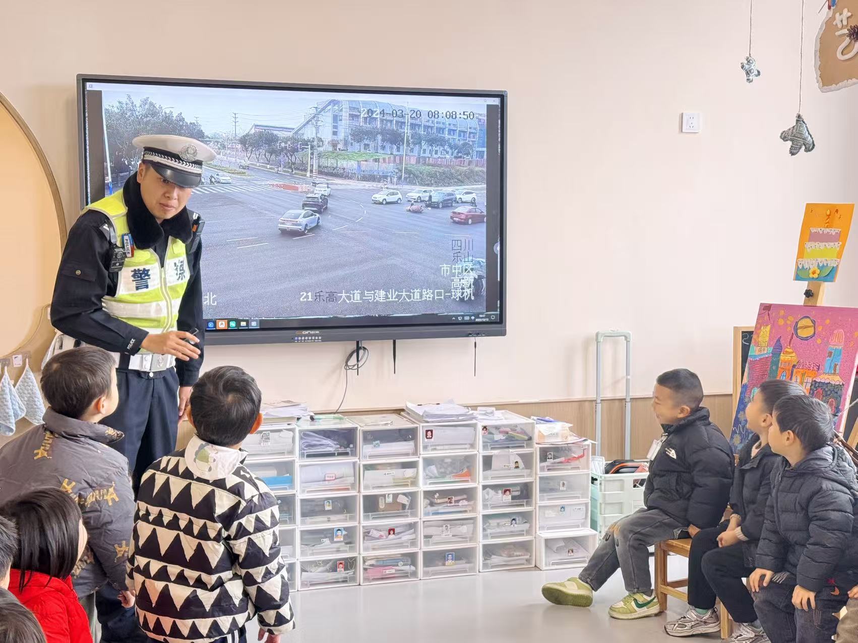 为响应全国交通安全宣传号召,12月,乐山高新区实验幼儿园至乐分园以“文明交通,礼行天下”为主题,开展了一系列交通安全教育活动。通过游戏化、情境体验式互动、邀请交警叔叔进课堂等多元形式,将交通安全融入幼儿的日常生活中,全面提升师幼及家长的交通安全意识和自护能力。