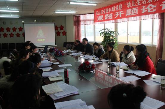 2015 年 12 月 24日上午,乐山市实验幼儿园召开了市级普教科研课题“幼儿生活素养启蒙实践研究”开题论证会。乐山市教科所专家团队、部分共同体幼儿园科研负责人以及课题组等参加了论证会。会上,业务园长文焰向与会人员作了论证报告,她就课题产生背景及核心概念界定、课题研究思路、设计方案、研究目标、研究内容、预期成果和效果等相关内容作了陈述。主研老师廖媛就《幼儿生活素养启蒙实践研究》具体操作策略作了详细陈述。论证会上,专家组一致认为本课题选题具有很重要的研究价值,对学前儿童的健康发展,对教育者创新认知、对课程的深入思考、实践和评估等都将具有较大参考性、针对性、实操性;整个报告的框架比较完整,分工明确,流程较为清晰;课题的参研人员多且都是一线骨干,且卷入全园教师参与,具备有力的研究条件。对实施阶段的工作,在专家指导下大家思路更加清晰,首先要深度分析解读幼儿生活素养表现水平现状及其产生的原因,找准课题研究的问题和切入点;二是准确把握课题涉及的核心概念内涵,厘清关键词“生活素养”的内涵外延,主张和实施要聚焦、具化,外延维度要科学表征。三是加强对同类研究现状的分析。找准比对研究中不足,寻找本课题研究的创新点和亮点。四是研究措施要从方法、途径、空间、其它教育形态等方面拓展,《幼儿生活素养启蒙研究》的具体策略应具有针对性、操作性、实效性。五是要关注研究的成果提炼,形成一套有效、可推广的成果。开题论证会补充和讨论环节,课题组教师在专家指导下,大家围绕相关工作中的具体问题和思考,各抒己见,互动交流,专家们细致深入的分析和启示,让课题组及共同体幼儿园科研负责人思路开阔、智慧共享,最终达成较清晰的共识。最后,涂蓉园长发言表示,幼儿园管理团队将带头上下联动,认真开展课题研究,大力支持并充分保障课题研究所需要的人力、物力财力,保证按时完成研究任务,达到预期研究成果和效果,实现“通过生活素养提升,开拓生命价值,促进幼儿健康发展”的根本目标。大家对来年的行动研究充满积极期盼和无限力量,开题论证会在祥和热烈的气氛中迎来了又一度圣诞平安的日子,让我们齐心协力开拓进取,共创科研兴教美好未来。