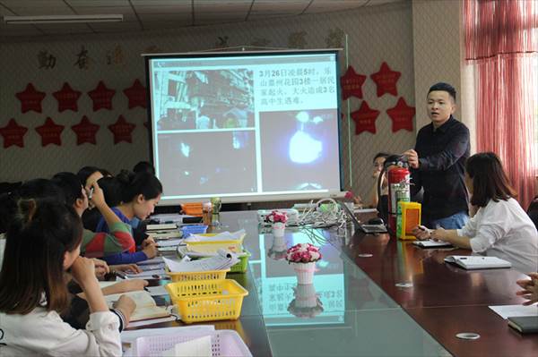 “安全维系着我们每个人的生命与健康,维系着每个家庭的幸福与美满,而孩子的安全则牵动着千家万户的心”为了加强幼儿园安全管理,增强园内教师消防安全意识,本着坚持“安全第一,预防为主”的方针,提高自救防范能力,做到在发生火警火灾时,能临危不乱,正确使用灭火器,确保幼儿的生命安全,我园在9月27日上午特邀我市政安消防知识宣传中心的陈教官以《认识或在,学会逃生》为题,开展了一场触动人心的消防知识安全讲座。