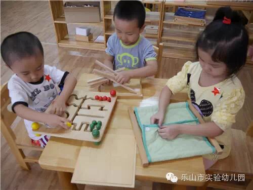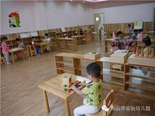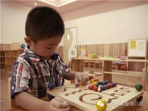 蒙台梭利(Montessori)教学法是由著名教育家玛莉亚·蒙特梭利博士倾其毕生经历所创造的,在于培养幼儿自觉主动的学习和探索精神。在乐山市实验幼儿园的蒙氏操作室里,有丰富多彩的教具,它们都是根据儿童发展敏感期所创立的适宜儿童成长的“玩具”。