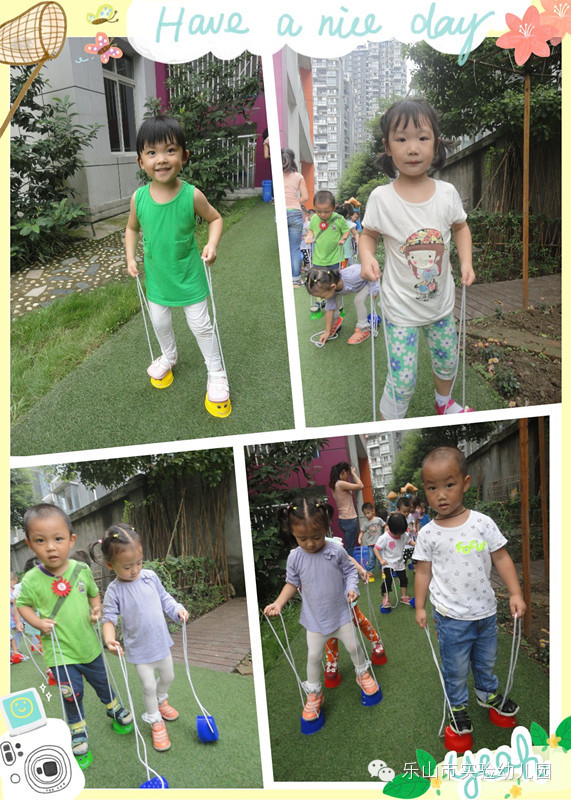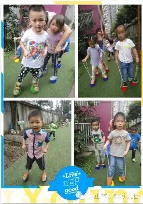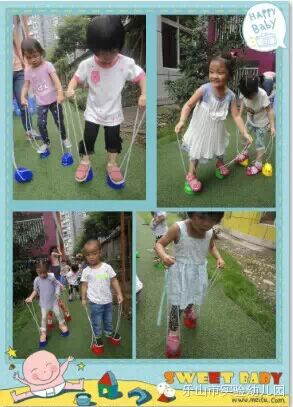 今天,市实幼小二班的宝贝们个个成运动小健将啦,他们正在户外走高跷。