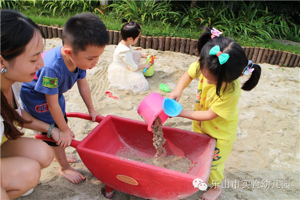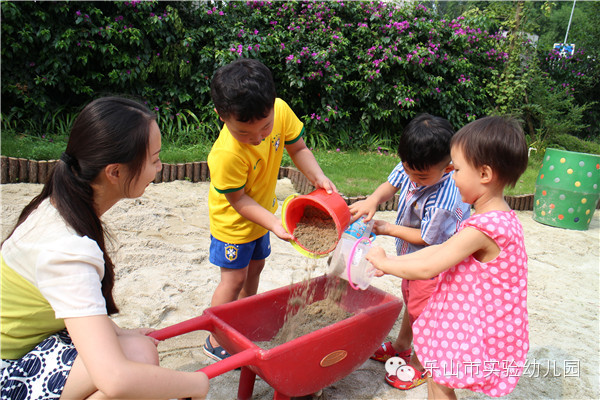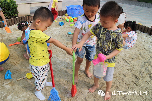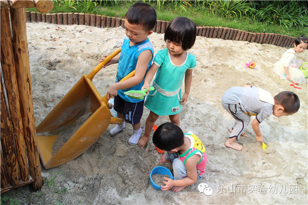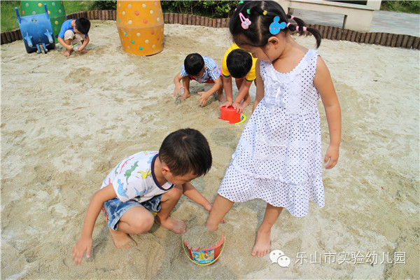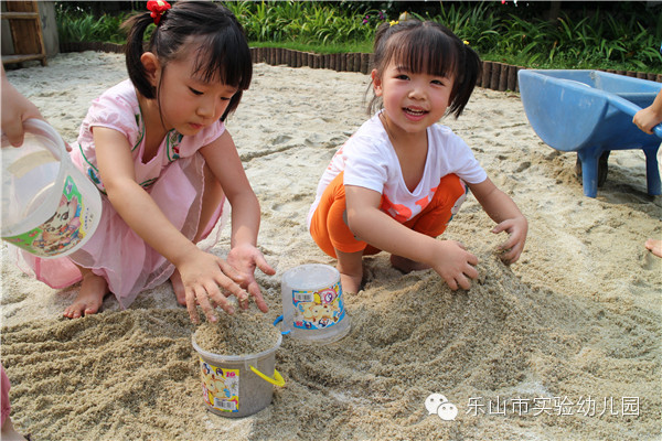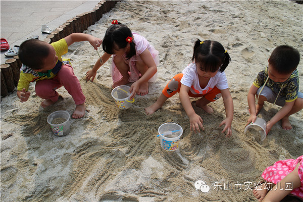 沙是变化无穷的,它引发着孩子们强烈的好奇心和求知欲。每一次玩沙都是孩子与老师、与同伴、与材料互动的过程,是孩子们创造、自主发展的过程。