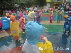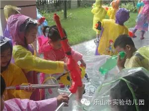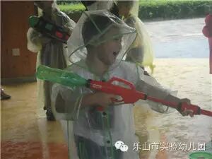 最吸引我们的就是水枪大战,瞧!我们是保卫地球的战士,看!我们是勇敢的挑战者,哈!我们是快乐的小天使!