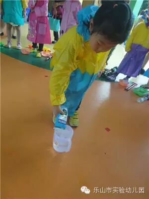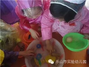 看,大一班的孩子们正与水亲密接触着,为什么有的玩具可以浮起来,有的却沉下去了呢?为什么鸡蛋在不同的水里会呈现不一样的沉浮呢?为什么水枪会吐出水呢?我们探索着、感知着、发现着、思考着……