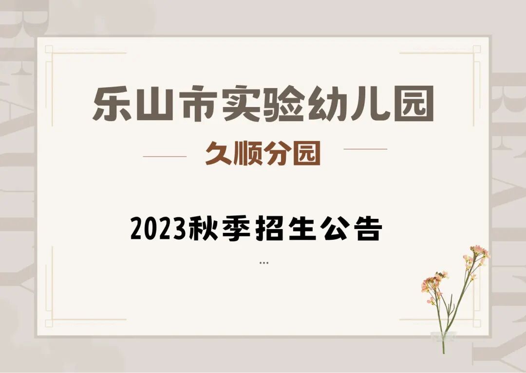 乐山市实验幼儿园久顺分园2023年秋季招生公告