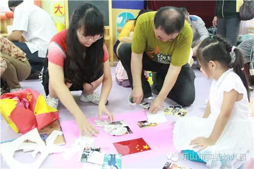 宝贝们齐念国庆节儿歌,和妈妈们一起跳“大中国”,听奶奶讲大中国的故事,和爸爸妈妈一起制作大中国的拼图海报,充分发挥家园共育的功效,可给予幼儿最即时的回应以及最自然状态下的一些国庆常识的授予。小小的心灵在一次次节日里、相聚中,亲身体悟着华夏的传统与文化。