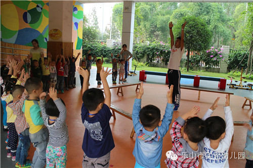 “超人”老师——杨浩,人气那叫一个高,走到哪里都有大批的粉丝,看孩子们一个个生龙活虎,跟着帅气的杨浩老师早操、运动和游戏,这哪里是平时的小淘气包?个个都是运动小健将: