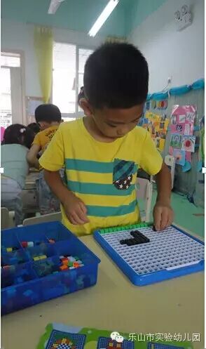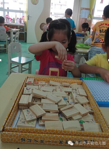 益智玩具不仅能让孩子动手动脑,还能让孩子玩了以后开发思维能力。瞧,大三班的孩子正在玩益智玩具。