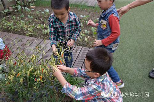 今天市实幼中三班小朋友迎来初秋第一批种植收获。下午孩子们满怀激动来到菜地,摘辣椒,拔香葱,个个兴高采烈,都是劳动小能手,看,孩子们多么认真的在采摘啊!