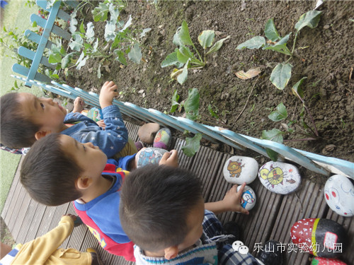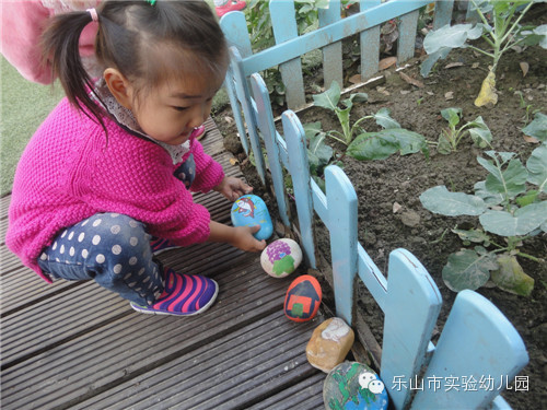 石头对于每个孩子都是个好玩而有趣的东西,市实幼小七班的宝宝和爸爸妈妈们用石头创作出色彩鲜艳,生动逼真,夸张抽象、形象各异的艺术作品:叮当猫、kt猫、荷花、海底世界、海绵宝宝。。。。一个个“艺术品”被孩子们装饰到了自己的菜园地里,这是一次愉快的体验!