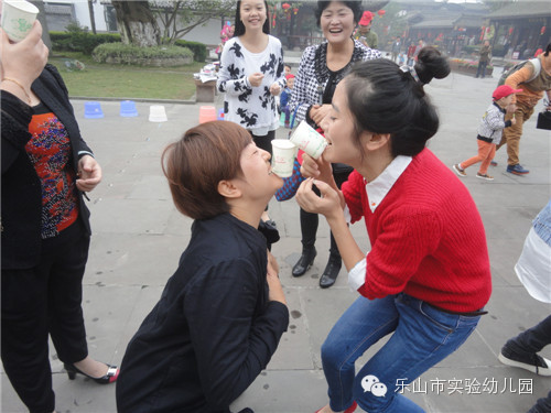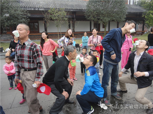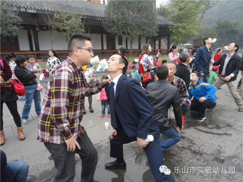 爸爸妈妈们太厉害了,在接水游戏的比赛中,他们尝试各种造型,保证杯子里的水完好无缺的运送到最后。尽管衣服和裤子打湿了,但他们谁也没有在意,依然沉浸在比赛的热潮里。