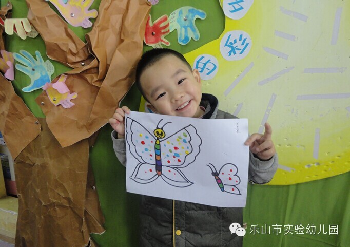 “老师你觉得我画得漂亮吗?我的蝴蝶穿着漂亮的礼服,准备去宫殿里跳舞呢!”