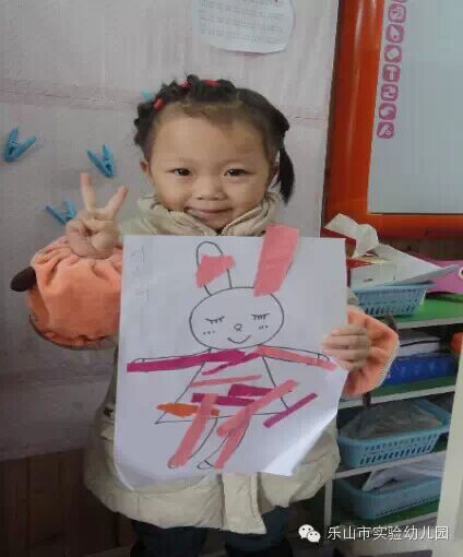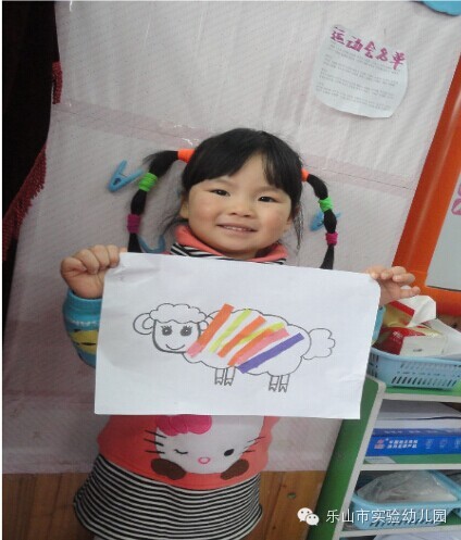 “老师我要给我的兔宝宝穿一件粉红色的裙子”;“我要做一件长长的衣服给我的毛毛虫”.....小朋友们开始发挥自己丰富的想象,为他们的动物宝宝设计了许多美丽的新衣服。