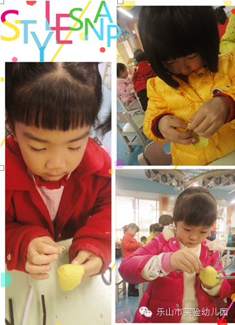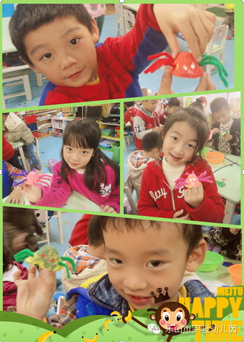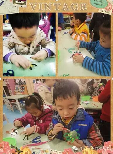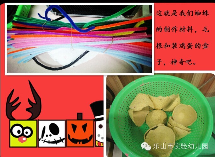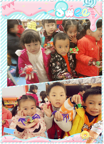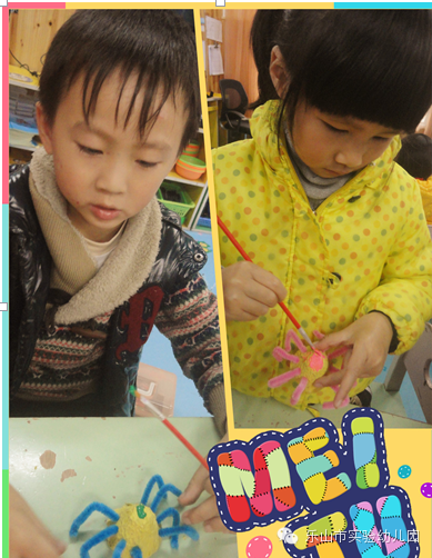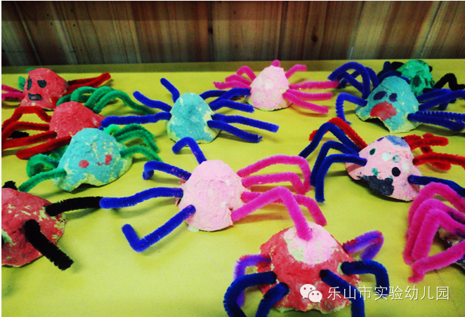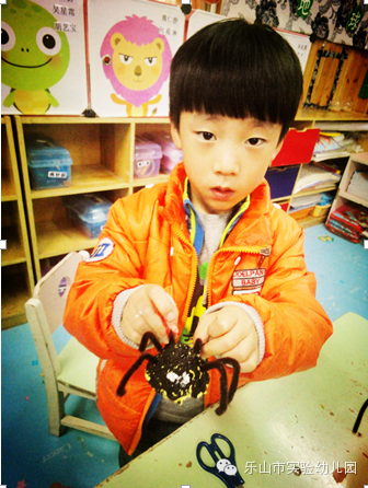 乐山市实验幼儿园的孩子们在小组游戏活动中,充分体验着与小材料带来的大乐趣,在制作“蜘蛛”的同时,色彩、数量、形状的概念在孩子们的心在悄悄发芽,既锻炼思维与想象能力,又提高了动手制作能力,同时也丰富他们的情感体验,真正体现“教育源于生活,也回归于生活”。