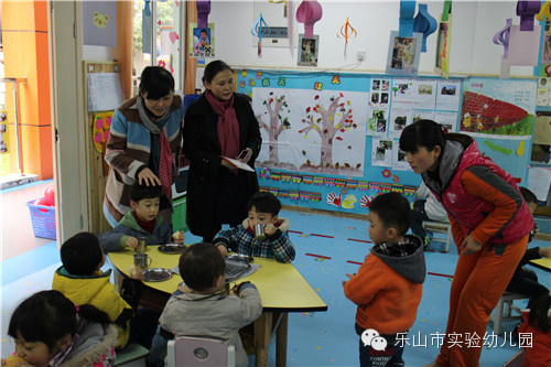 11月17日,市实幼迎来了“2014年乐山市幼儿园保教质量评估”工作。在学前教育事业发展的大好形势和教育改革任务迫切需求下,为进一步深入贯彻《3——6岁儿童学习与发展指南》精神,全面提高幼儿园办园水平和保教质量,促进全市学前教育事业内涵发展,由乐山市教育局和乐山市教科所领导并组织实施开展了2014年全市幼儿园保教质量评估和检查,旨在通过“观、看、评、议、思、践”常态教育实践,并结合自评互评,搭建各级各类幼儿园“观摩——评价——交流——学习——提升”的平台,重新审视并规范幼儿园在事业发展中的办园理念、保教工作(教育理念、健康安全、课程实施、家园社合作)、教育科研、教师成长等方向定位、实践轨迹和实施效果。