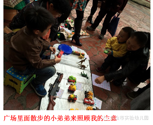 虽然天空不作美,但是大三班的宝贝们依然兴致勃勃,有序的摆摊,有模有样的与客人讨价还价。活动的圆满,完全是成就于宝贝们从中的体验与获得。相信,每一个家庭都有自己不同的惊喜!